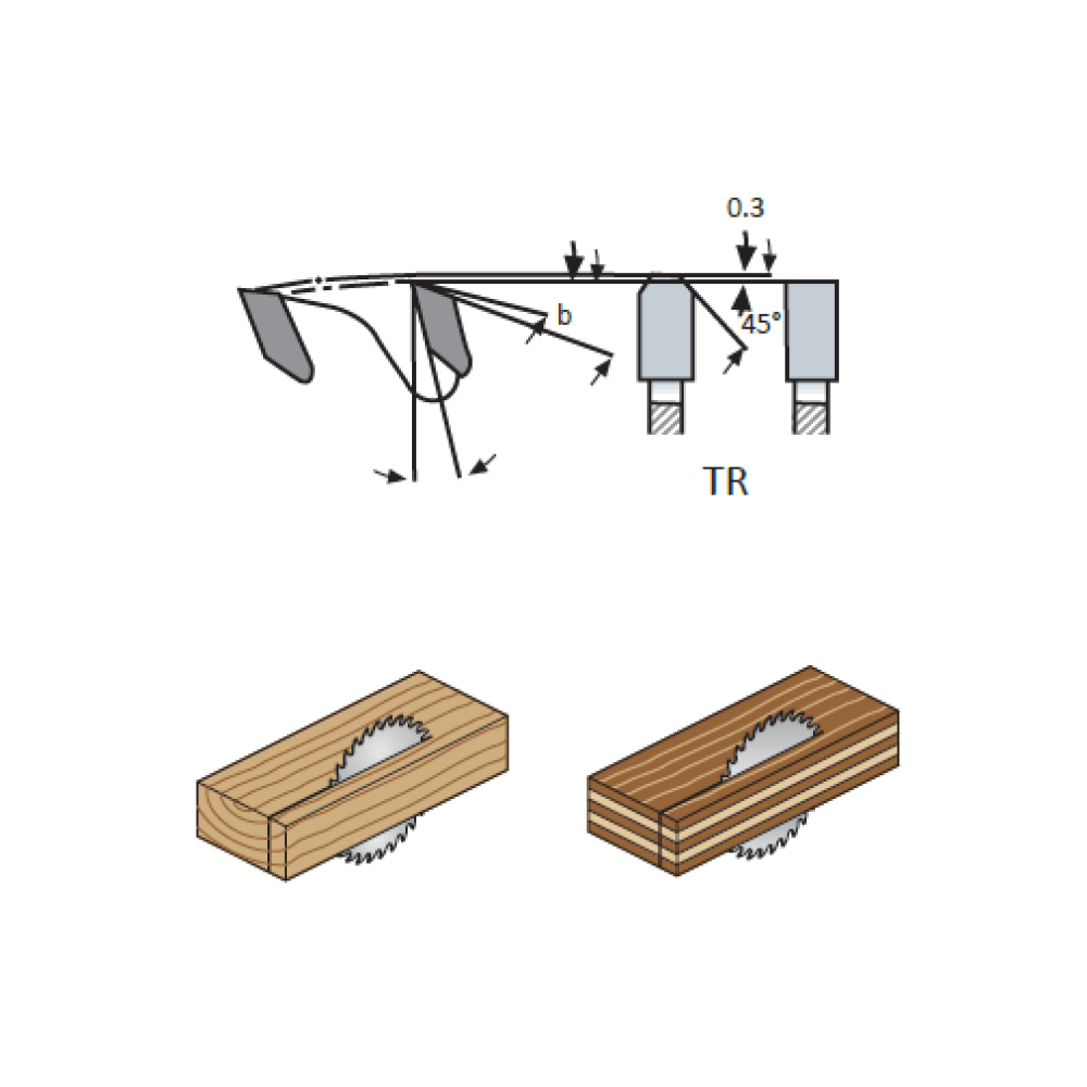 • Пильные диски для резки ламината и МДФ с формой зуба TRF