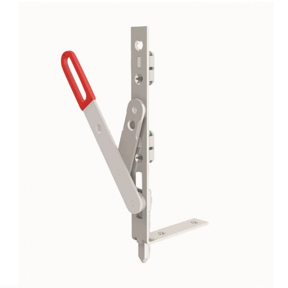 Конструкция проста, но как запорный механизм, достаточно эффективна. Задвижка работает следующим образом: рычаг воздействует на штырек (ригель), который входит в специально предназначенное место — зацеп на порог.