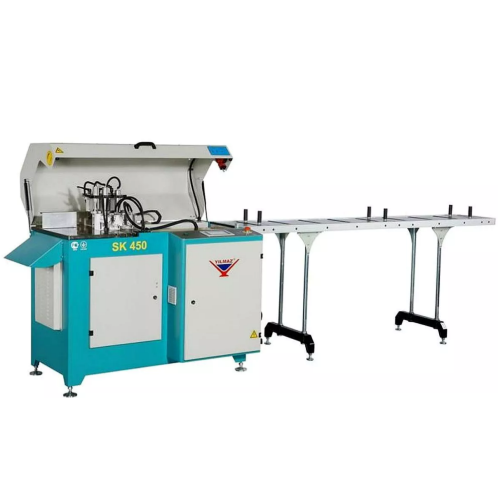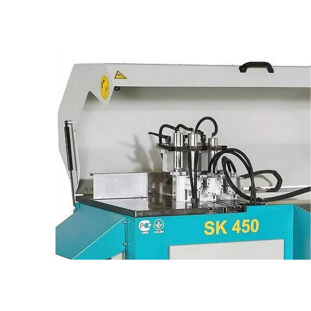 Автоматическая пила YILMAZ SK 450 предназначена для серийной высокоточной резки оконных ПВХ и алюминиевых профилей под углом 90°.
